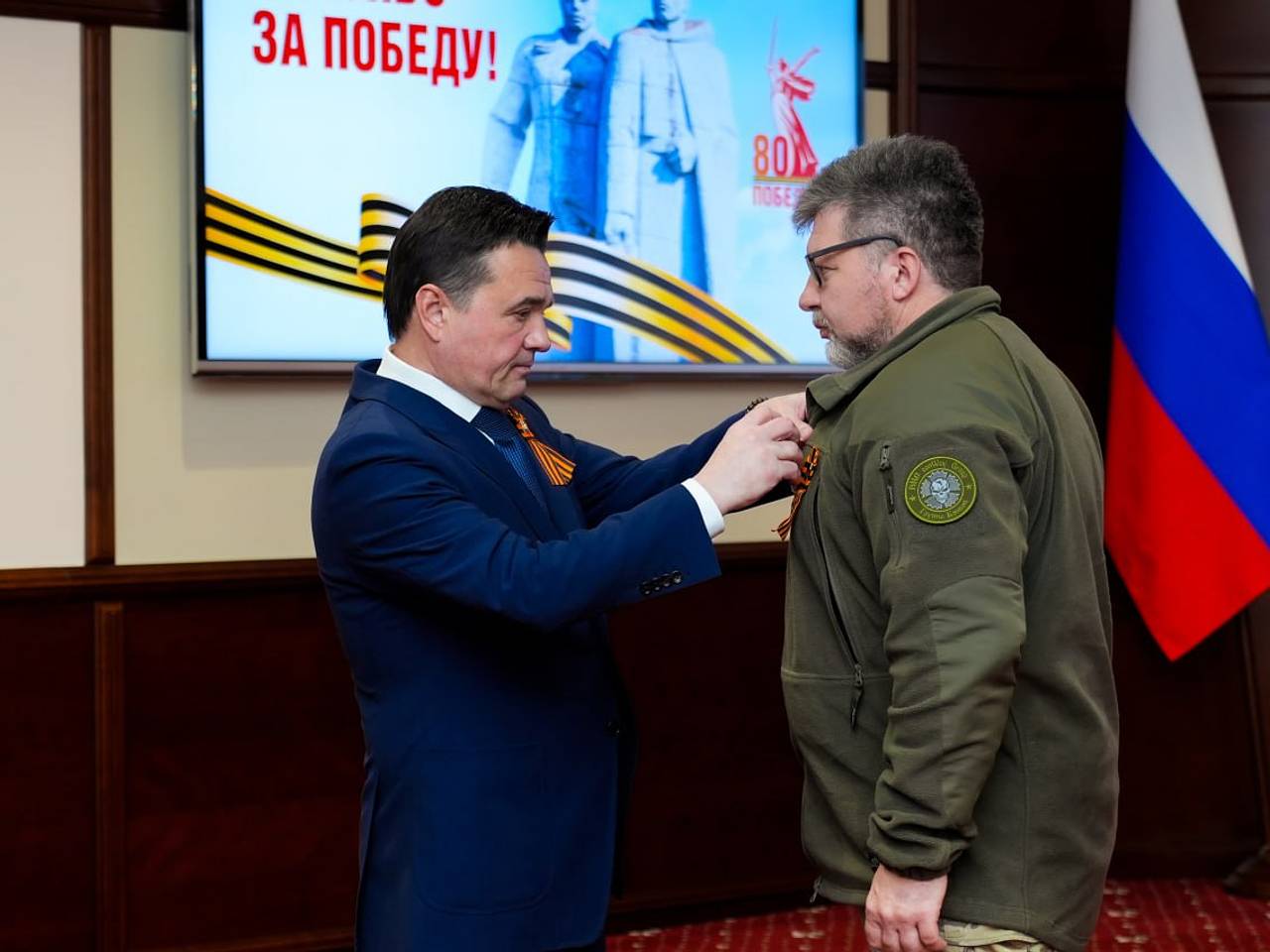 «Это уже стало доброй традицией — по поручению президента вручать награды нашим героям. Мы со своей стороны стараемся помогать семьями тех, кто сегодня на передовой, предоставлять различные меры поддержки, помогать всем, что сейчас нужно на линии боевого соприкосновения. Хочу вас поздравить с наступающим праздником!», — заявил глава Подмосковья.